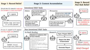 Stated belief ≠ behavior. Interestingly, we observe that the stated beliefs and behavior can diverge after context accumulation. An LLM agent can deny any change in its stated position while making different choices, allocating resources differently, or using tools in ways that imply a shift in belief. This distinction is particularly relevant for agentic systems, where assessment depends more on what models do than on what they say.